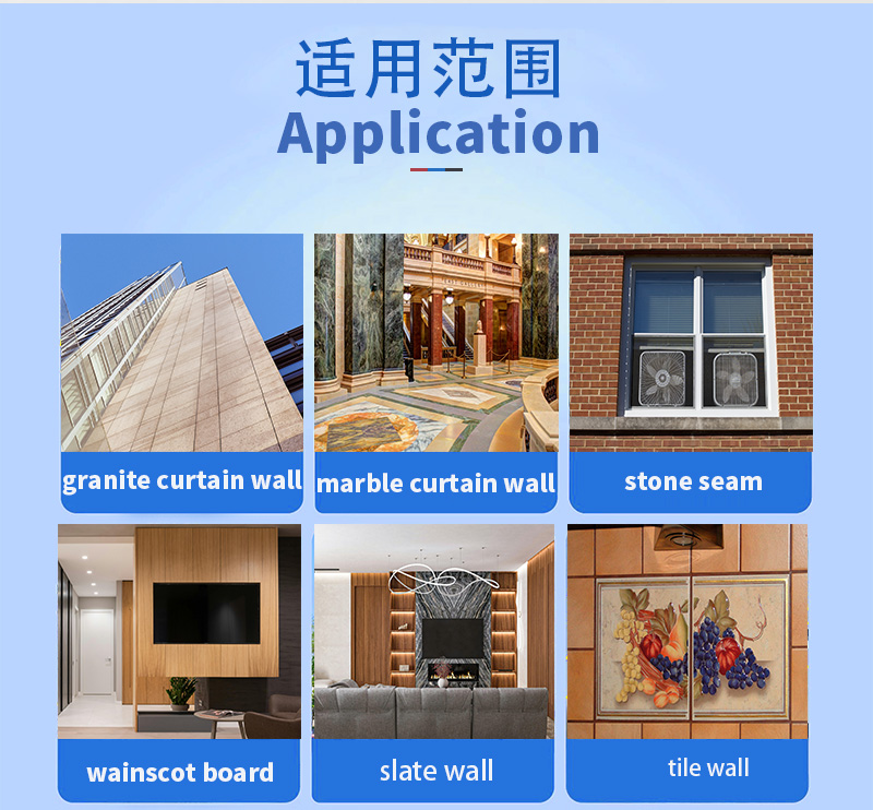 3. Non-pollution and odorless, formula not contain inert small molecules such as plasticizers, no pollution to porous materials such as marble and granite, good effect on sealing and decoration.