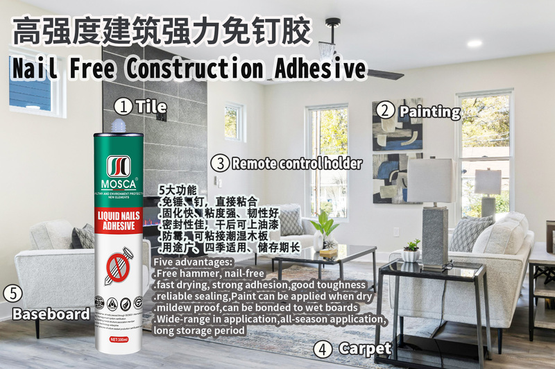 Zero nail adhesive, nail free adhesive, Non-nail sealant, Nail free construction adhesive