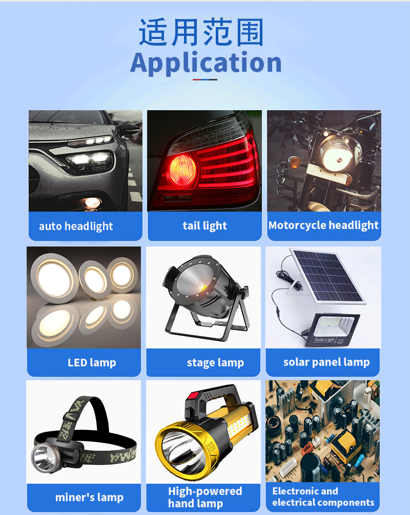 - All kinds of vehicles lamp,LED lamp,LED light bonding and sealing.