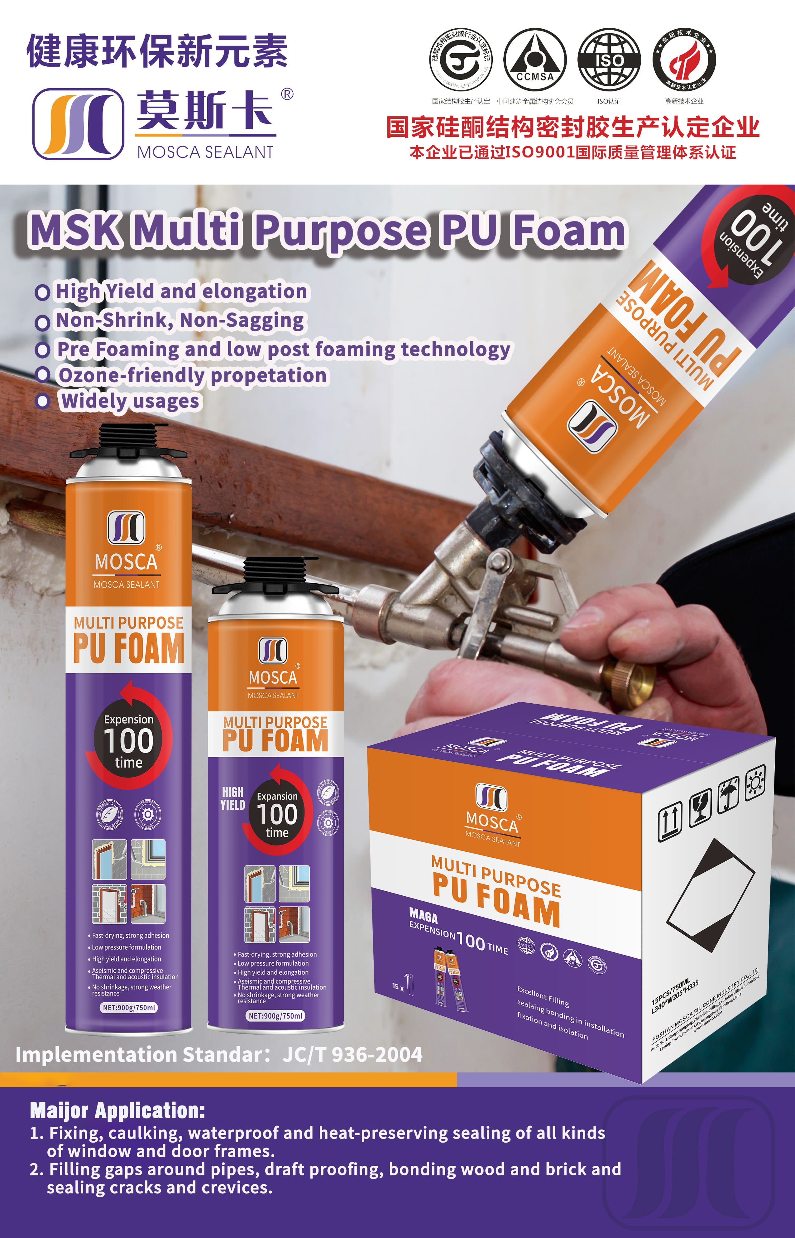 - Excellent expanding and bonding strength, good mounting capacities,stable foam, can improce fixing effect of wood.