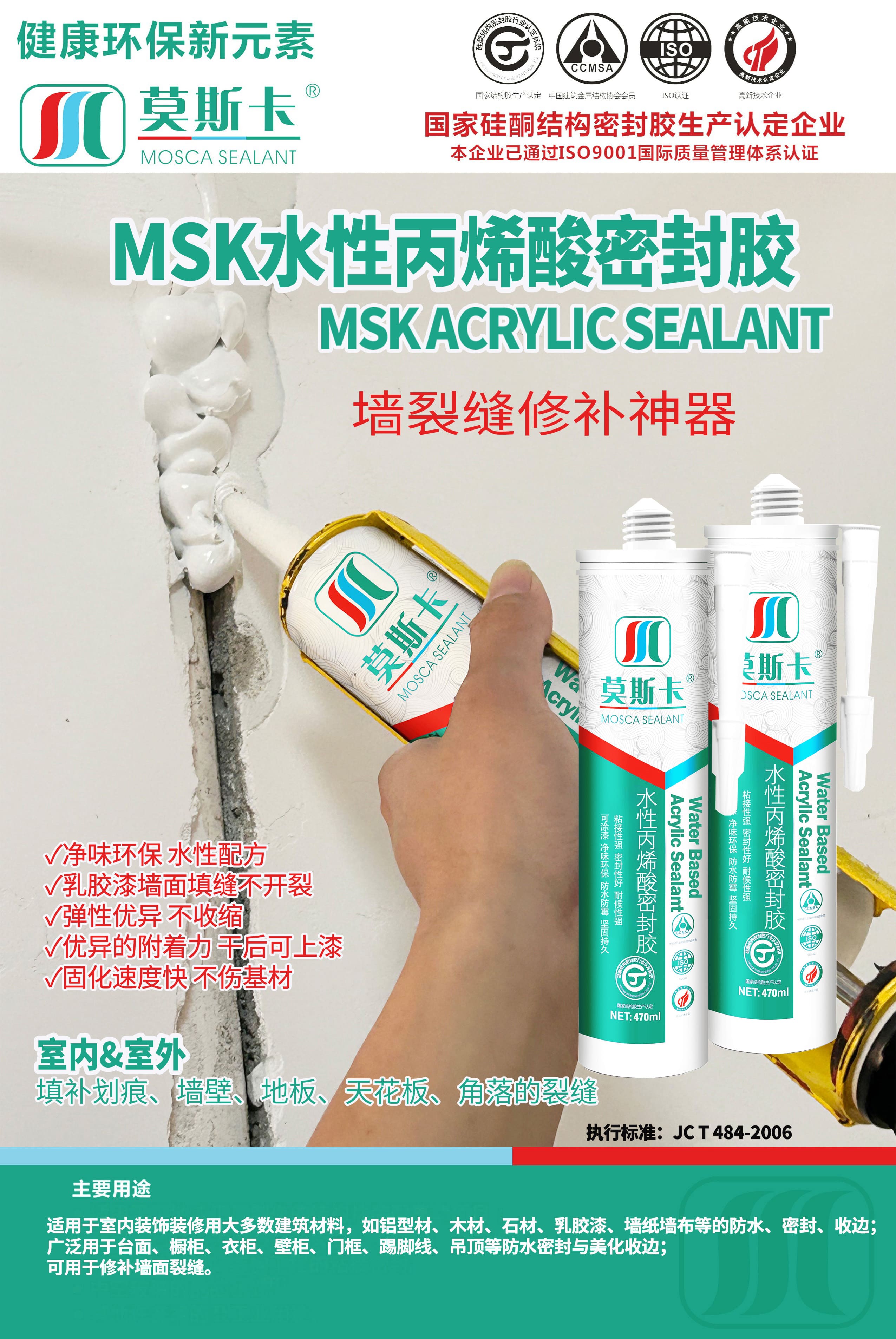 本产品是一款性能优异的单组分水性丙烯酸密封胶。固化速度快,而且具有良好的耐候性和防水密封效果。质地细腻均匀,通过 水分挥发固化,绿色无甲醛,固化后胶体表面具有良好的着色力,可进行涂覆涂饰。适用于木质、塑钢门窗的收口密封,以及装 饰石材、室内装修装潢的美化密封。使用过程无刺激性或难闻气味,净味环保,为您带来全新的施工理念和美观效果。